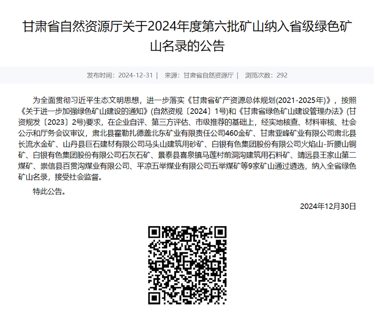 纳入省级绿色矿山名录
