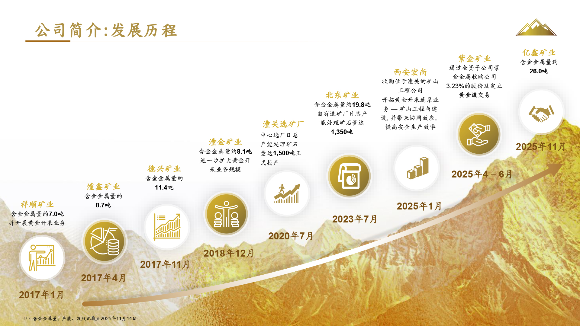 潼关黄金集团有限公司(香港主板上市公司,股份代号:340)主要从事黄金勘探及开采业务。公司自2017年1月完成潼关县祥顺矿业发展有限公司之收购后,于2017年4月至2018年12月先后完成潼关地区三家金矿企业的收购,于2023年7月完成甘肃省酒泉市肃北县霍勒扎德盖北东矿业有限责任公司的收购,进一步扩大了本集团公司的资产及黄金资源。使本集团公司的产能和盈利水平大幅提高,亦使公司的发展迈入新的阶段。